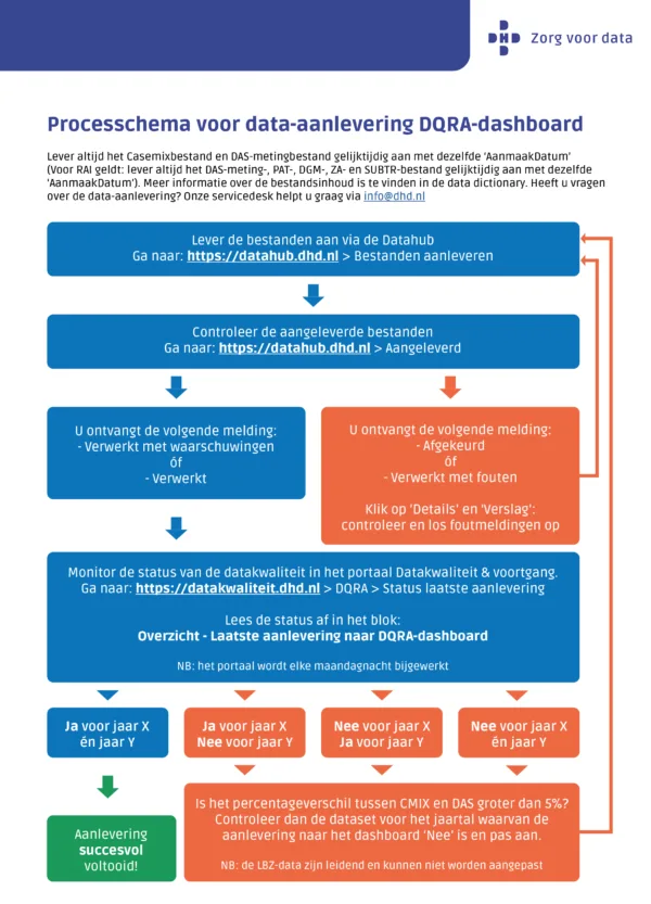 Om betrouwbare en actuele inzichten in het DQRA-dashboard te krijgen, is het belangrijk dat de benodigde data volledig en juist worden aangeleverd via de Datahub. Op deze pagina vindt u meer informatie over en een visuele weergave van het proces en de benodigde voorwaarden.